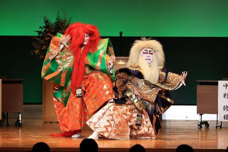 花柳流日本舞踊家の花柳 基(はなやぎ もとい)さんと花柳 絵美舞也(はなやぎ えみまいなり)さんによる連獅子の祝踊が披露され、大きな拍手とともに式典が開幕しました。