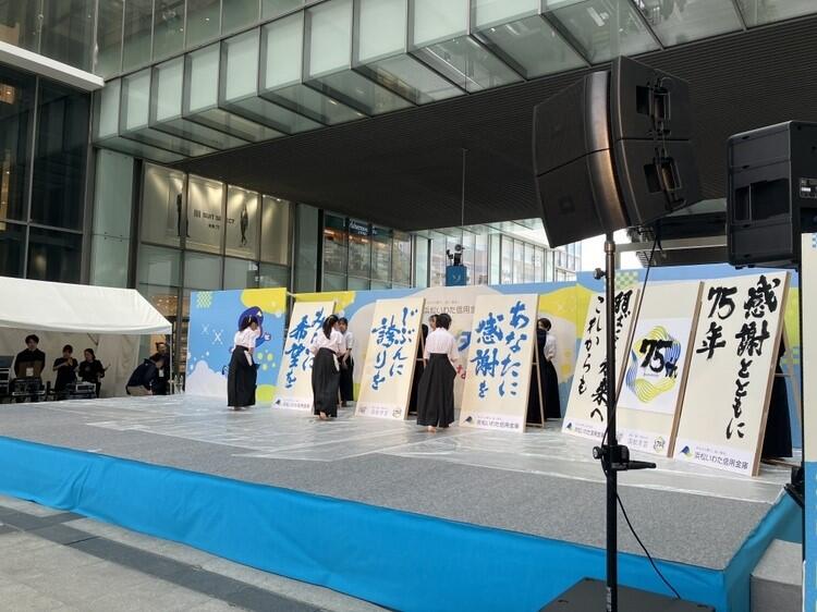 「感謝とともに75年 羽ばたく未来へこれからも」という記念スローガンと、「感謝」「誇り」「希望」の3つのコンセプトも力強い筆致で表現してくれました。
