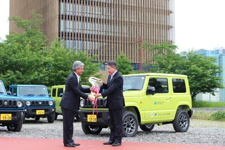 当日は、髙栁理事長より中野浜松市長へ「スズキ ジムニー」14台を贈呈いたしました。
