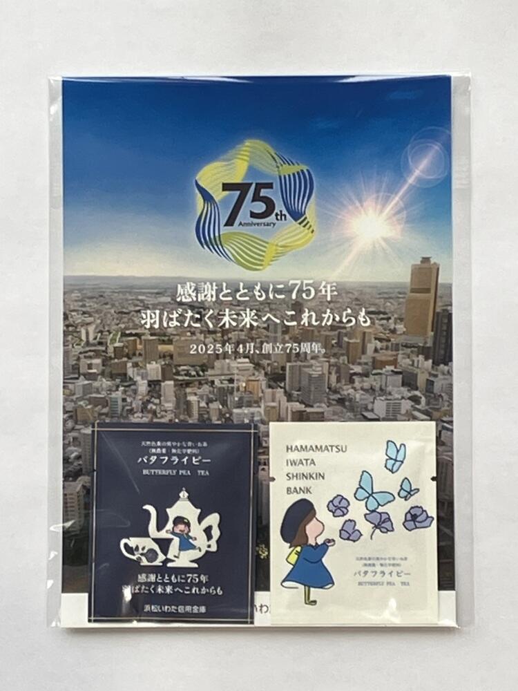 皆さまへ感謝を込め、当金庫コーポレートカラー「青」をイメージした、記念ノベルティ「青いハーブティー(バタフライピー)のティーバッグ2個セット」を、2025年4月10日(木)より、ご来店のお客さまへプレセントします。