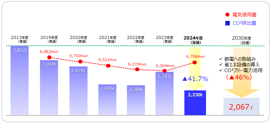 ・2013年度のCO2排出量を基準として、2030年度までに46%の削減を目指します。
