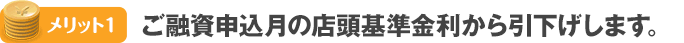 ご融資申込月の店頭基準金利から引下げいたします。