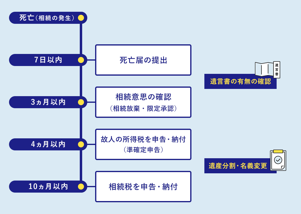 ご提出いただく書類のご準備をお願いします。当金庫所定の「相続手続依頼書」は窓口にご来店いただいたお客さまが相続人であることを戸籍謄本等で確認のうえ、お渡しします。