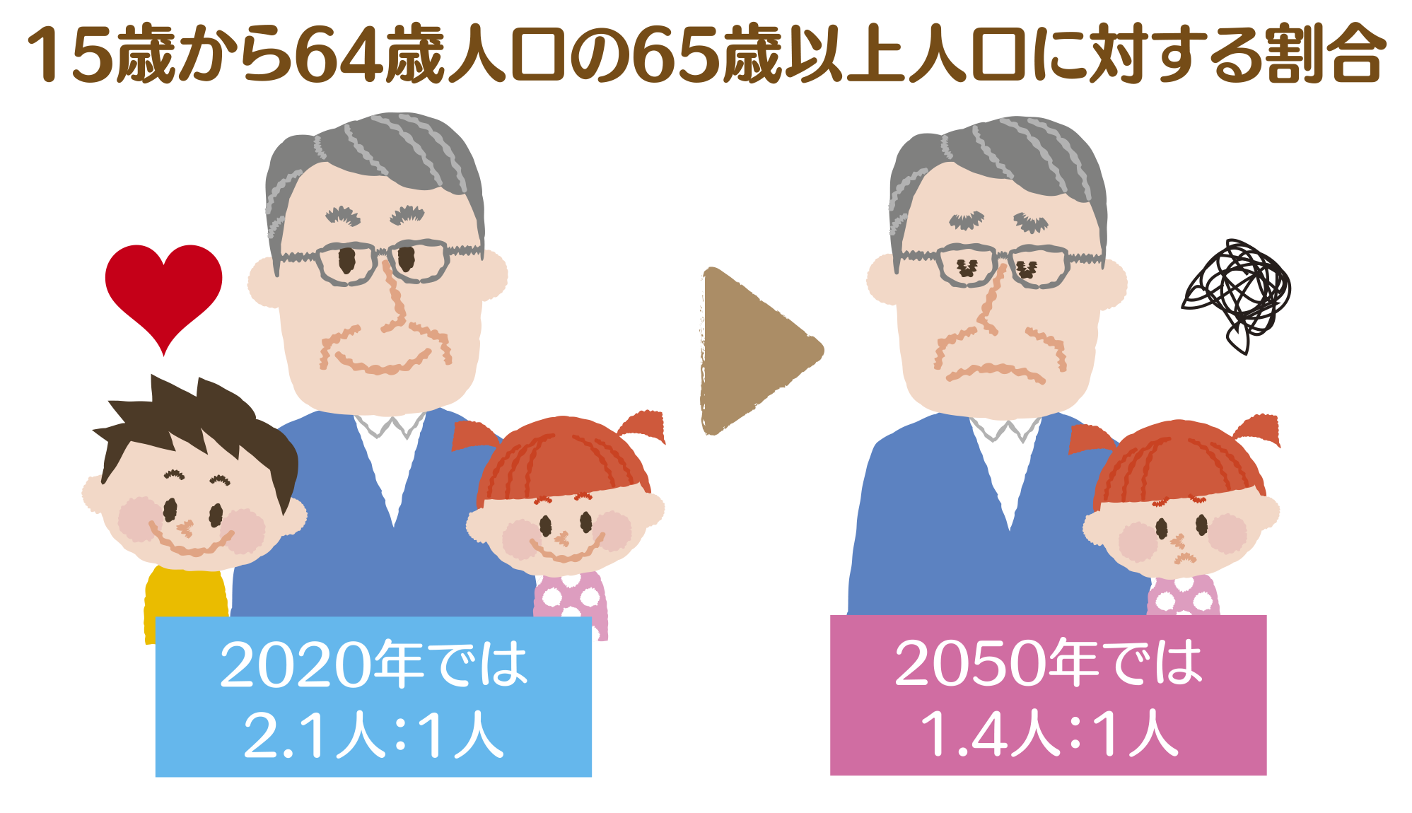 日本では「少子高齢化」が急速に進んでいるので、現役世代が減り、年金生活者を支えることが難しくなってきています。