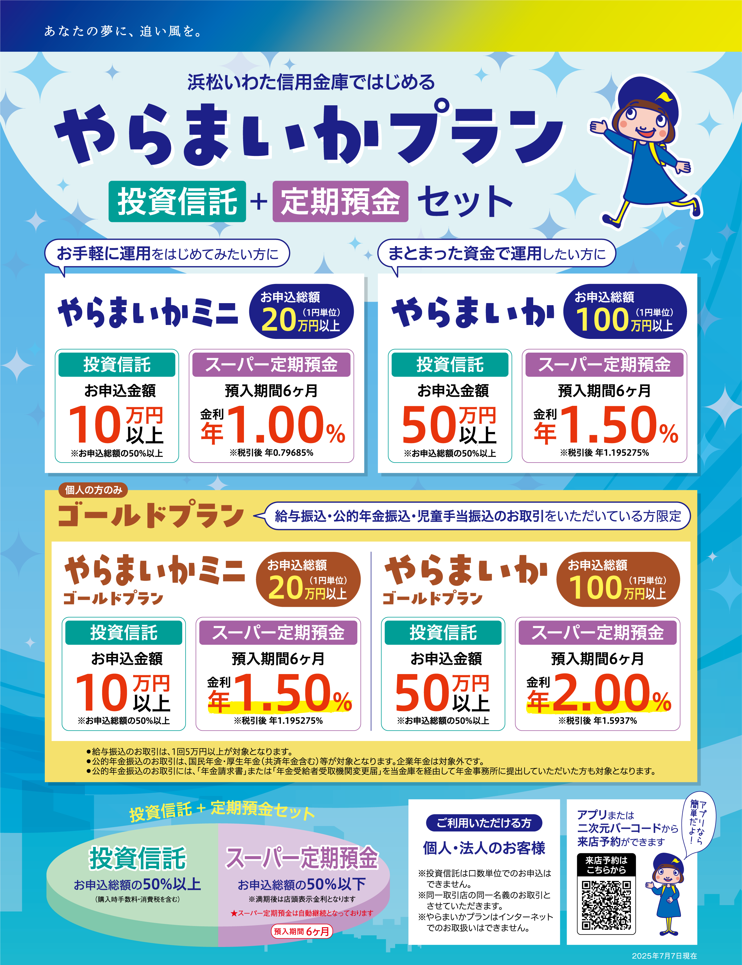 | お申込総額 | お申込総額:20万円以上 (お預入れ単位:1円単位) (投資信託50%以上+定期預金50%以下) |