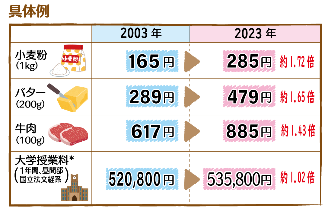 ※右記はあくまで資料からの抜粋であり、商品によっては、値下がりしている物や据置が続いている物もあります。