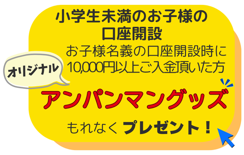 小学生未満のお子さま名義で普通預金口座を開設時に10,000円以上ご入金頂いた方