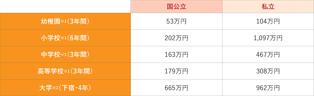 - 学校の授業料はもちろん、教育には様々な費用がかかります。