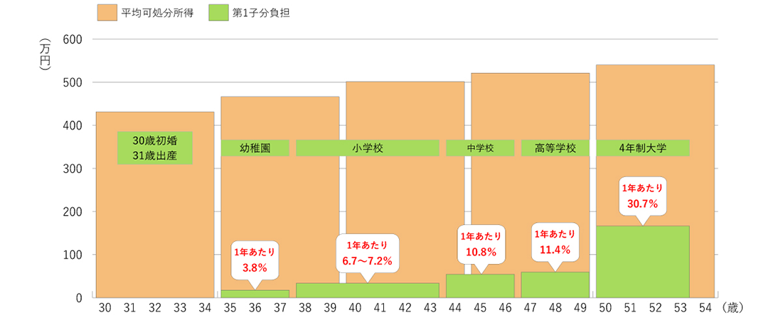 教育費はお子さまの成長とともに増え、大学生が1人いる家庭では所得の30%を教育費で占めるというデータも……。