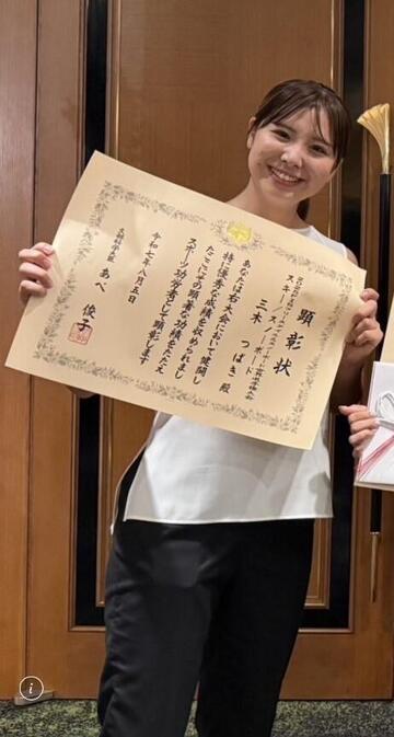 顕彰の授与を受けた三木選手は「来年のミラノ・コルティナ五輪はウインタースポーツの選手にとって一番の大舞台。皆様の応援を胸に全力で戦う」と代表で謝辞を述べました。
