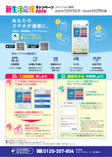 「夢おいプラス」アプリのダウンロードおよび口座登録の方法はこちらをご覧ください。