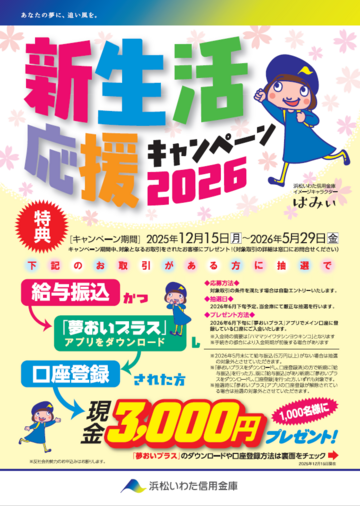 来年度新たに社会人となる方、当金庫口座で給与を受け取られている方に現金が当たるキャンペーンを開催します!